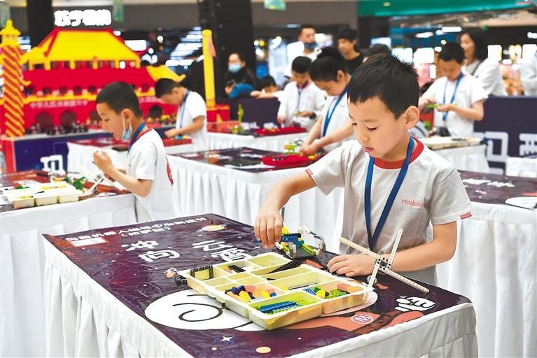 圖為孩子們在完成積木挑戰(zhàn)項(xiàng)目。記者 王敏 攝