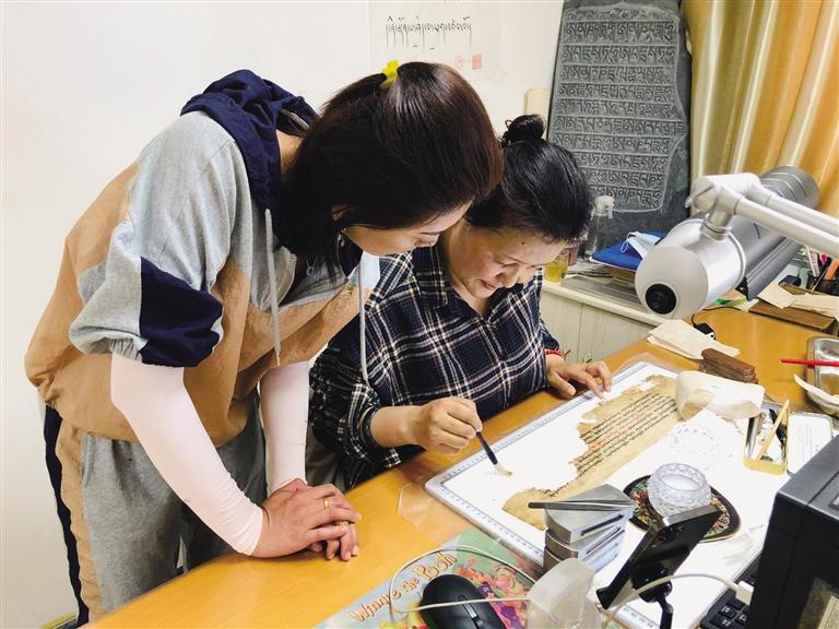 2015年自治區(qū)古籍修復(fù)中心成立以來,在國(guó)家圖書館和云南省圖書館等專業(yè)修復(fù)中心接受培訓(xùn)實(shí)踐的修復(fù)人員積極投入到藏文古籍修復(fù)工作中,相繼完成了拉薩市墨竹工卡縣芒熱寺破損古籍的修復(fù)任務(wù),修復(fù)古籍文獻(xiàn)共248葉,拍攝建檔496幅圖片,并把這部分完成修復(fù)的古籍文獻(xiàn)同目錄按正規(guī)程序移交給寺廟。完成了對(duì)山南市隆子縣加玉鄉(xiāng)強(qiáng)慶村白嘎寺的237函、3萬(wàn)多葉的珍貴古籍文獻(xiàn)的整理、建檔和拍攝書影等工作。同時(shí)啟動(dòng)了7000多葉破損古籍的修復(fù)工作,截至目前已完成4420葉破損古籍的修復(fù),為進(jìn)一步做好傳統(tǒng)古籍文獻(xiàn)的再利用和原生性保護(hù)給予了有力保障。