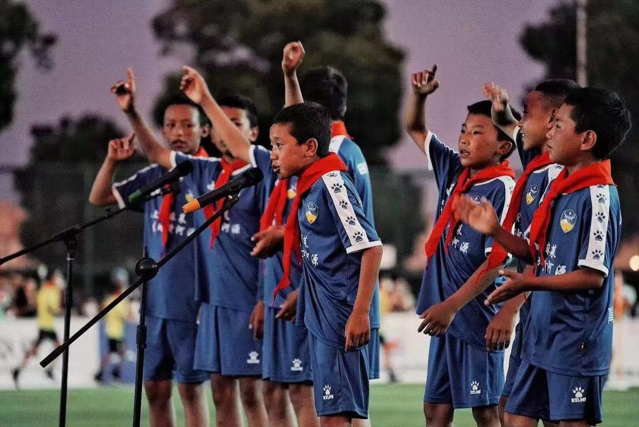 “2034杯”第二屆全國(guó)小學(xué)生足球大會(huì)(U12)總決賽如約在蘇州舉行,來自全國(guó)64支代表隊(duì)近1300名運(yùn)動(dòng)員參賽??缭?100多公里的路程,多果與隊(duì)友們第一次走下高原,第一次坐火車,第一次乘飛機(jī),第一次和來自全國(guó)的足球隊(duì)伍同臺(tái)競(jìng)技,這么多的第一次讓他們既興奮又緊張。開幕式上,多果所在的玉樹藏族自治州曲麻萊縣克瑞斯俱樂部少年足球隊(duì)集體演唱歌曲《Fly》燃爆全場(chǎng)。