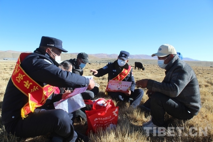 圖為崗巴邊境派出所民警深入牧場宣講黨的二十大精神