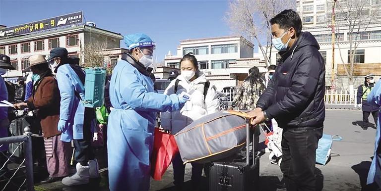 “老師好!”“同學(xué)好!”早已等候在校門口的老師一邊向?qū)W生打招呼,一邊檢查學(xué)生的核酸檢測結(jié)果證明以及線下復(fù)課同意書簽字情況。另一部分老師則仔細(xì)對(duì)學(xué)生的行李進(jìn)行消殺。拉薩市第八中學(xué)德育副校長昌決表示,返校期間,入校人員必須持有48小時(shí)核酸檢測陰性證明,并落實(shí)好門口的“一測一掃兩檢查”制度,把好疫情防控第一關(guān)。
