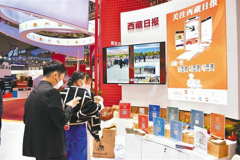 圖為參觀者在西藏傳媒集團有限公司展位前了解產(chǎn)品詳情。記者 謝筱純 攝