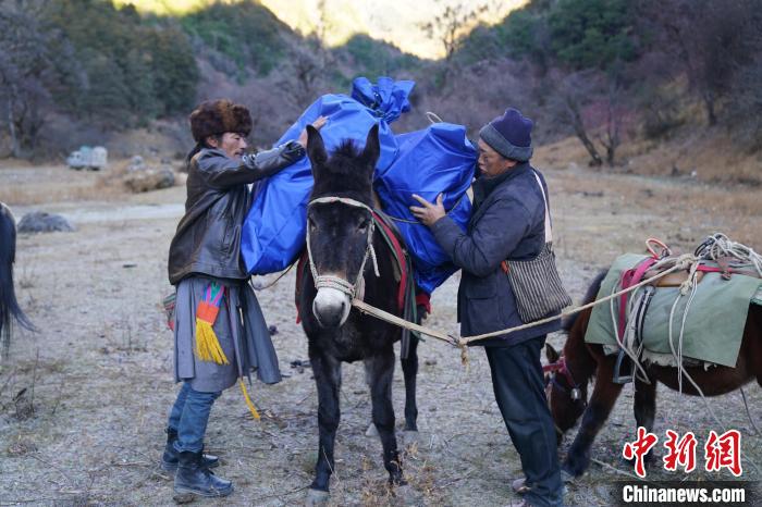 正值寒冬,丹增培楚牽著騾馬隊(duì)從香格里拉高原牧場的群山之間緩緩走來,馬幫的銅鈴發(fā)出叮叮當(dāng)當(dāng)?shù)臉氛隆?/p>