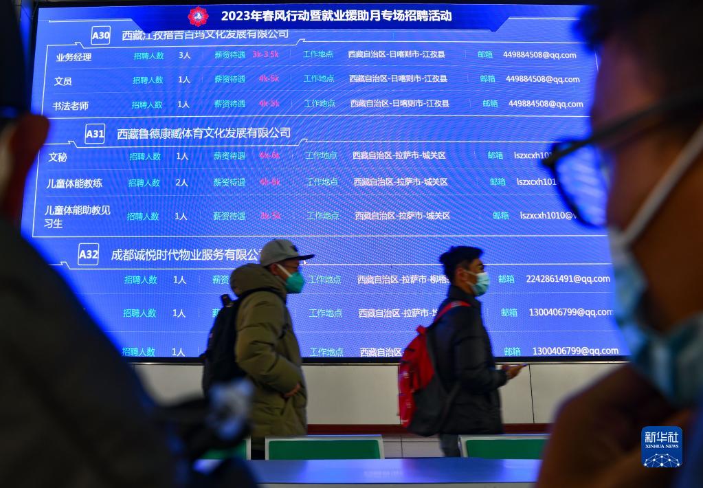 2月8日,求職者在西藏2023年“春風(fēng)行動”暨就業(yè)援助月招聘活動現(xiàn)場尋找崗位。新華社發(fā)(高嵩攝)