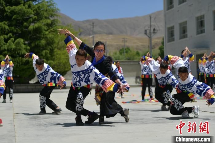 馬丹帶領(lǐng)西藏學(xué)生排練舞蹈 受訪者本人供圖