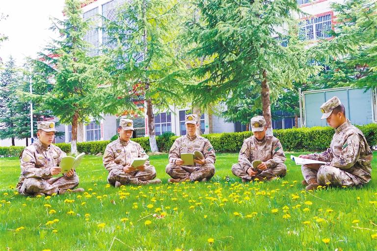 圖為西藏拉薩警備區(qū)某團官兵利用休息之余在營區(qū)內(nèi)看書。付枰凱 記者 趙文慧 攝