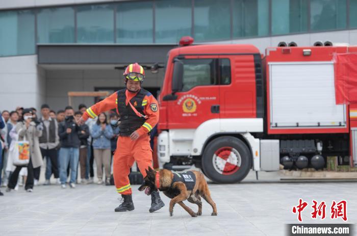 圖為搜救犬表演現(xiàn)場。 貢嘎來松 攝