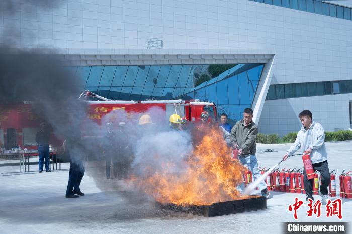 圖為學(xué)生體驗油盆火災(zāi)撲救。 貢嘎來松 攝