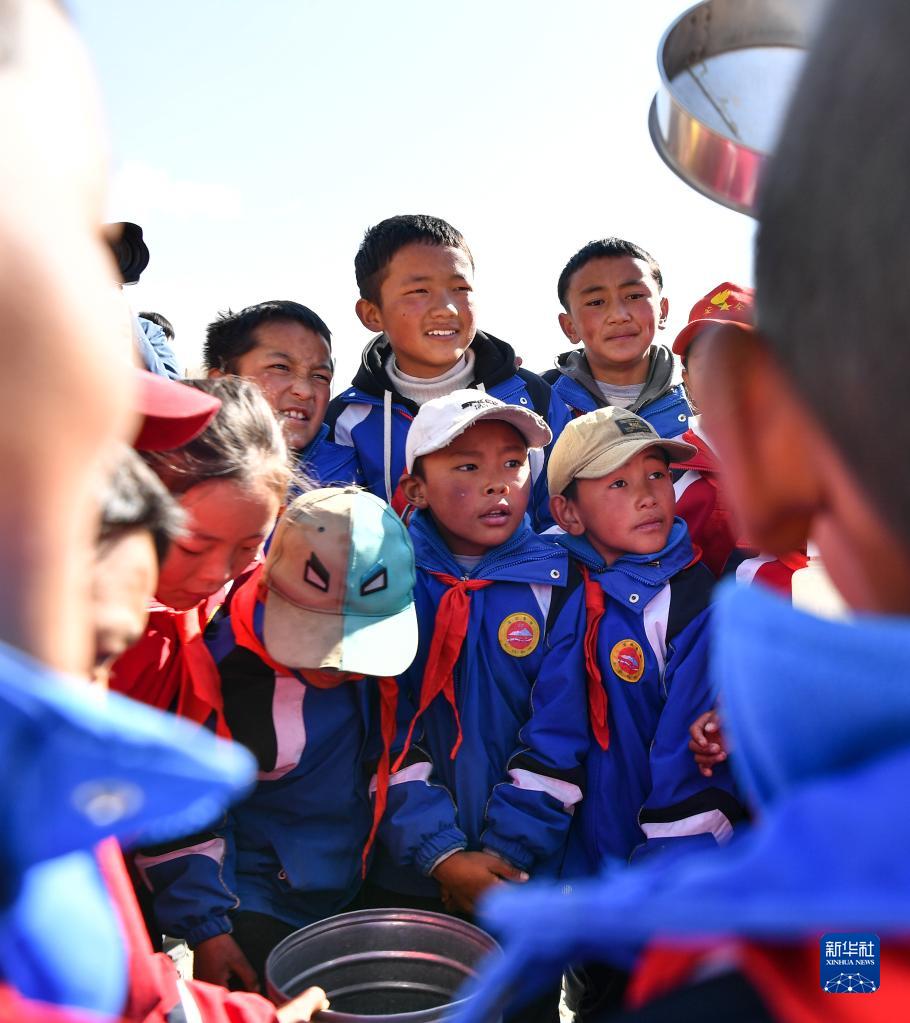 5月15日,扎西宗鄉(xiāng)完全小學(xué)的學(xué)生們在珠峰站參觀學(xué)習(xí)。新華社記者 晉美多吉 攝