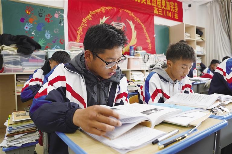 高三教學(xué)樓,遠遠便聽見教室里傳來的朗朗書聲。課堂上,老師正耐心細致地講解著習(xí)題,同學(xué)們時而認真聽講、奮筆疾書,時而相互討論、請教老師……大家神情堅毅、目光堅定,在各自的一方天地里埋頭苦學(xué),以最專注的態(tài)度為即將到來的人生大考做著準備。“今年我們學(xué)校有660余名高三學(xué)生,現(xiàn)在大家都在進行最后的沖刺,隨后還會進行一次模擬考試。”拉薩江蘇實驗中學(xué)高三年級部副主任張姣姣告訴記者,“今年是新課改的第一年,各學(xué)科老師都在盡心盡力幫助同學(xué)們查漏補缺,合理安排最后沖刺階段的學(xué)習(xí)時間,確保同學(xué)們能夠從容自信地踏入考場。”
