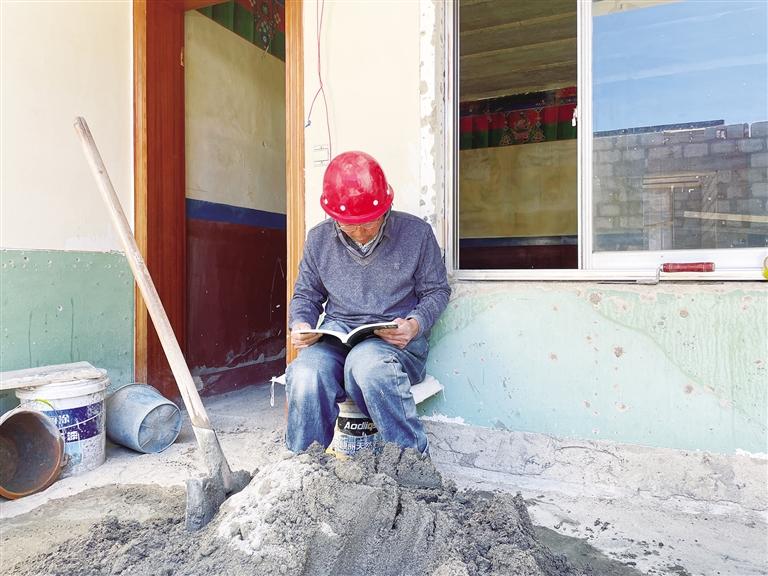 閑暇時(shí),朔風(fēng)在工地上看書。文/圖 記者 趙越