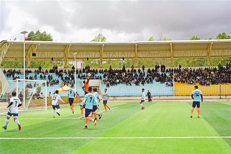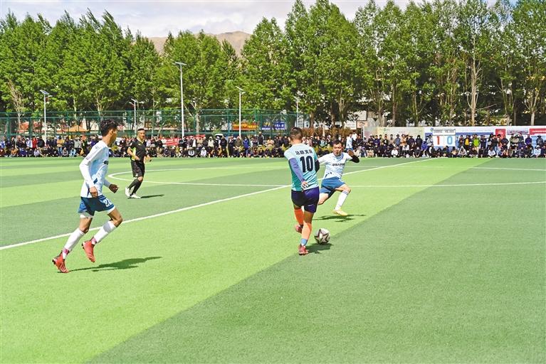 圖為日喀則市首屆“珠峰杯”足球聯(lián)賽決賽現(xiàn)場(chǎng)。記者 扎西頓珠 攝