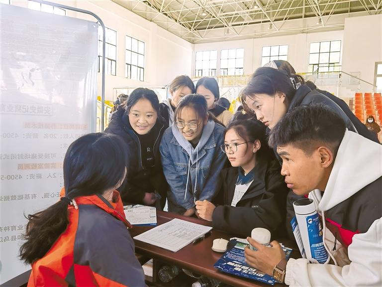 4月3日,在西藏職業(yè)技術(shù)學(xué)院文學(xué)院舉辦的旅游酒店行業(yè)招聘會上,20多家星級酒店到現(xiàn)場招攬人才。這是學(xué)校今年春季開學(xué)以來舉行的第19場招聘會。