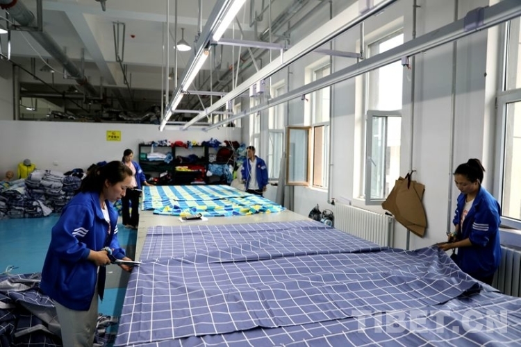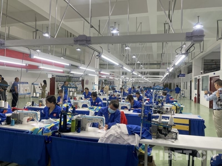 中國西藏網(wǎng)訊 6月28日,位于青海省海東市民和回族土族自治縣的青海洺欽和服飾制作車間內(nèi),電動(dòng)縫紉機(jī)的噠噠聲不絕于耳,穿著藍(lán)色制服的工人正專注地趕制一批中學(xué)校服。