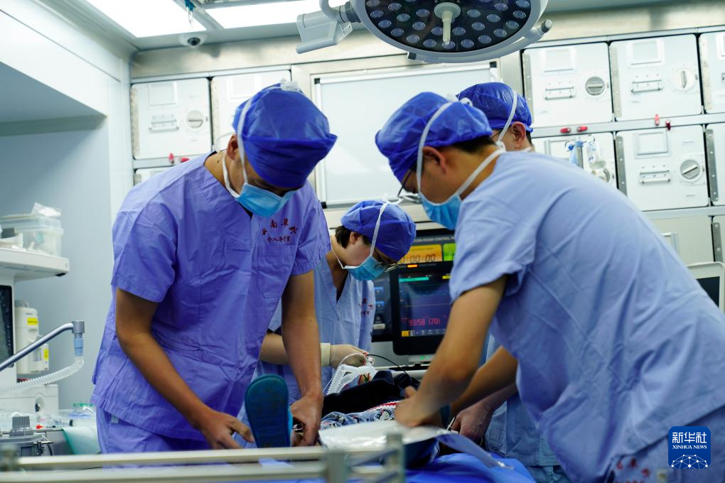 醫(yī)護(hù)人員在移動介入治療手術(shù)車上為先心病患兒進(jìn)行微創(chuàng)手術(shù)。新華社記者 劉洪明 攝