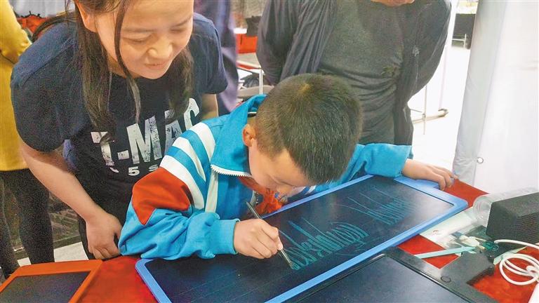 圖為小學生在次仁多吉設計的電子寫字板上書寫藏文字母。見習記者 武沛濤 攝