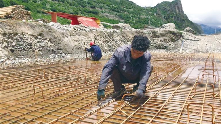 扎西達瓦正在工地上扎鋼筋。 圖由扎西達瓦提供