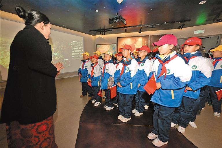 圖為拉薩市堆龍德慶區(qū)乃瓊中心小學的學生參觀百萬農(nóng)奴解放紀念館。記者 潘多 攝