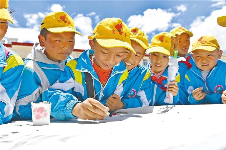 多年來(lái),娘熱鄉(xiāng)完全小學(xué)充分利用課堂教育,先后推出藏戲、藏文書(shū)法等特色教育,引導(dǎo)學(xué)生了解、繼承和發(fā)揚(yáng)優(yōu)秀傳統(tǒng)文化,先后獲得了“第二批全國(guó)中小學(xué)中華優(yōu)秀文化藝術(shù)傳承學(xué)校”“自治區(qū)級(jí)非遺示范基地”等榮譽(yù)稱號(hào)。