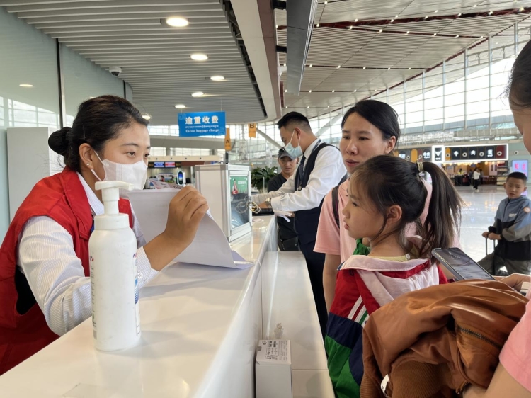 同時,拉薩貢嘎機場為滿足“暑運”期間旅客多樣化出行需求,以便民、惠民、利民為出發(fā)點,先后推出“首次乘機、無憂暢行”的首乘服務、“交流無邊界,服務零距離”的漢藏雙語服務、“無陪兒童”“無陪老人”服務、快線專屬中轉(zhuǎn)值機服務、自助行李托運服務、逾重行李收費電子化服務等便民舉措,有效提升了旅客出行體驗。針對暑期航班密集、出現(xiàn)人流“井噴”,拉薩貢嘎機場在高峰時期加強保障人員力量,增添機關突擊隊志愿人員,及時管控、主動引導、耐心解答。在車水馬龍、人頭攢動的航站樓內(nèi),“志愿紅”們用最美微笑和貼心服務為出行旅客送去一縷清涼。