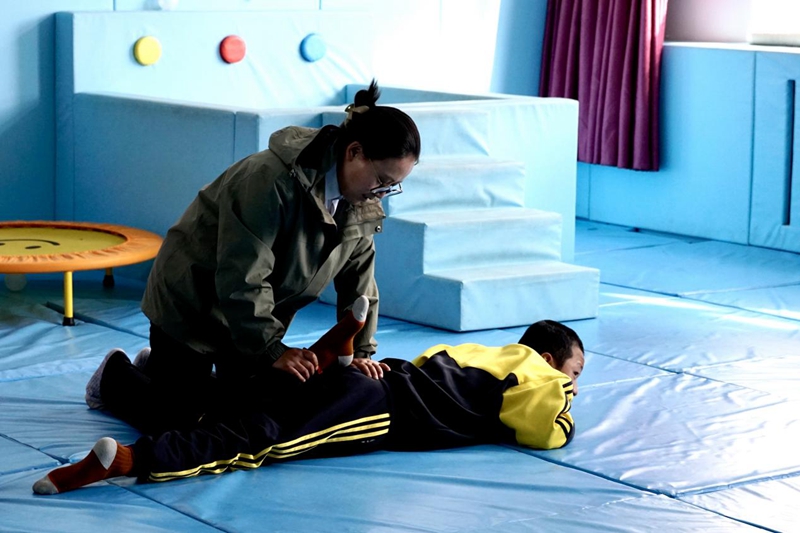 陶藝室內(nèi),一位患有情緒障礙的孩子正在特教老師陳雙燕的陪伴下吃勁地揉捏著泥巴,一旁的手機(jī)正播放著輕緩的鋼琴曲。用音樂治療焦躁,用陶藝安撫失控,特殊教育學(xué)校副校長(zhǎng)蔣濤解釋道:“玩泥巴,是給控制不了情緒的小孩最好的情緒解決方式,也是最安全的方式。”