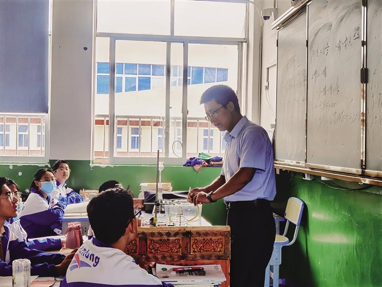 “李老師非常平易近人、和藹可親,他會帶著我們做化學(xué)實(shí)驗(yàn),在實(shí)驗(yàn)中可以了解到很有趣的知識,讓我們更加快樂地學(xué)習(xí)。”拉薩市第八中學(xué)九年級二班的同學(xué)們表示,李老師關(guān)心每個(gè)人的學(xué)習(xí)狀況,如果有人在考試中表現(xiàn)不佳,李老師會親自講解,并在試卷上標(biāo)注出需要改正的錯誤。下課后,李老師也會認(rèn)真傾聽學(xué)生們的想法和感受,與孩子們互動交流。
