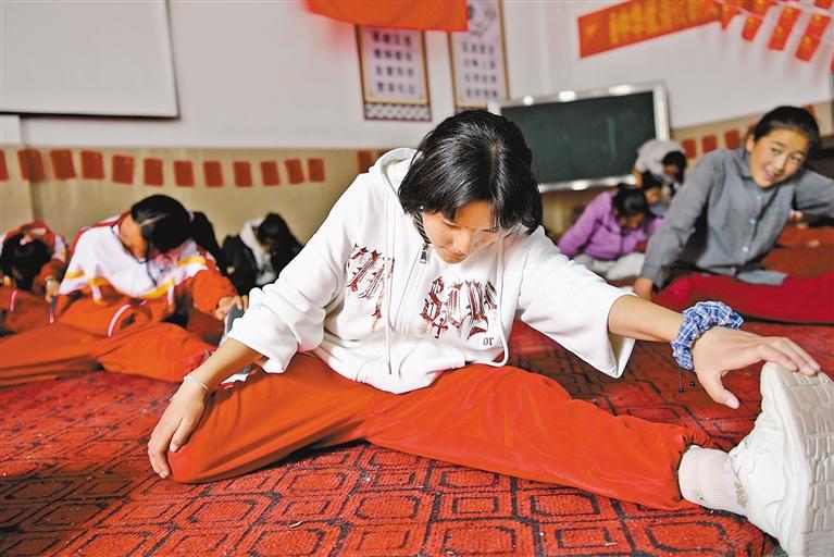 拉薩市第四中學(xué)學(xué)生在舞蹈社團(tuán)課上練習(xí)舞蹈基本動(dòng)作。記者 王敏 攝