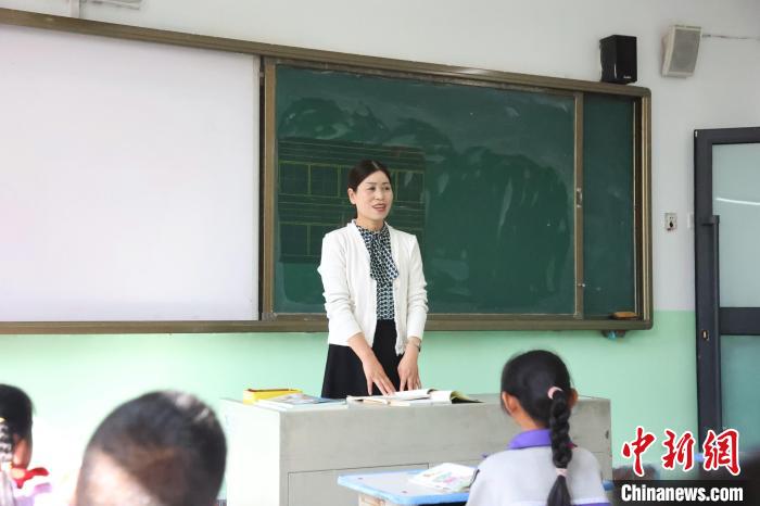 圖為張雪蓮在西寧市湟中區(qū)多巴鎮(zhèn)丹麻寺小學的教室內(nèi)上課。張?zhí)砀?攝