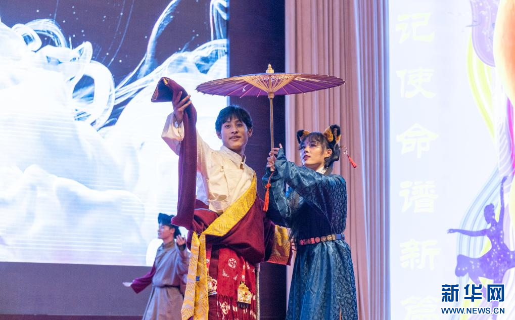 開幕式現(xiàn)場學(xué)生們正在表演服裝秀節(jié)目(9月21日攝)。丁增尼達(dá) 攝