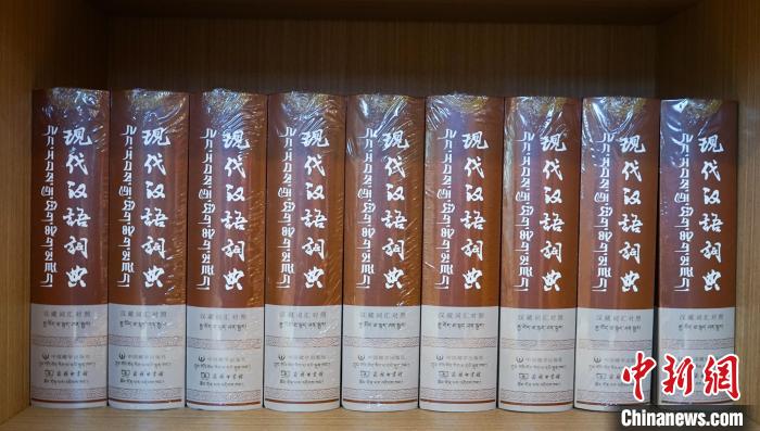 圖為中心內(nèi)擺放的《現(xiàn)代漢語詞典(漢藏詞匯對(duì)照)》書籍。馬銘言攝