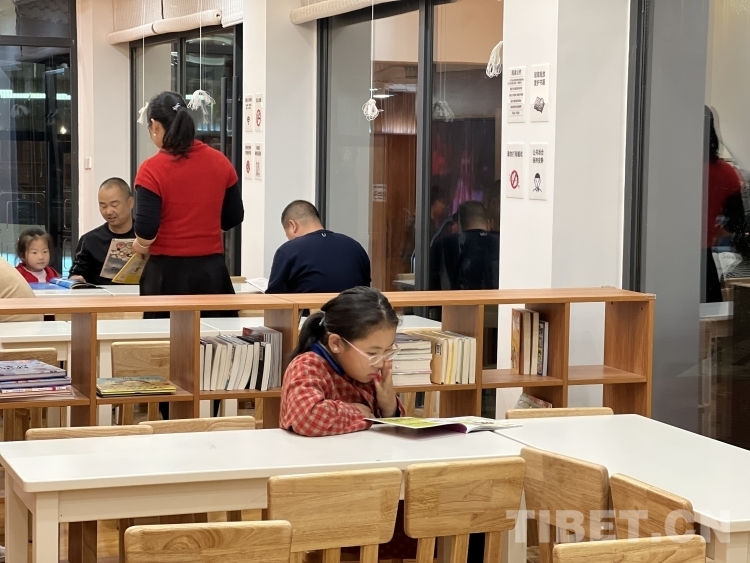 走進蓮花書屋,一樓的書架和閱讀區(qū)幾乎坐滿了專心閱讀的大人小孩?!拔蚁矚g來公園散步,這里環(huán)境很美。前天過來散步時,看到我期待已久的書屋終于可以進去看書了。家里的書都被我看完了,所以我這兩天一寫完作業(yè)就要來這里看新的書。”五年級的德央措姆在少兒閱讀區(qū)翻看書籍,她為能夠擁有這樣的讀書環(huán)境而感到很高興。
