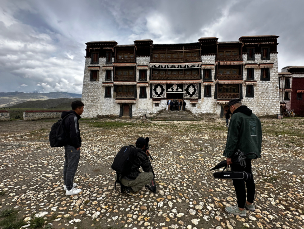 《高原文物守護(hù)者口述史》攝制團(tuán)隊在古建筑遺址的工作照