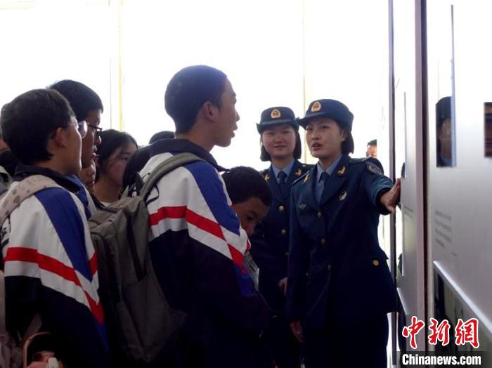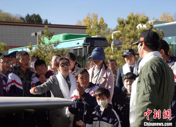 圖為拉薩江蘇中學的學生們了解空軍的歷史。拉巴卓瑪 攝