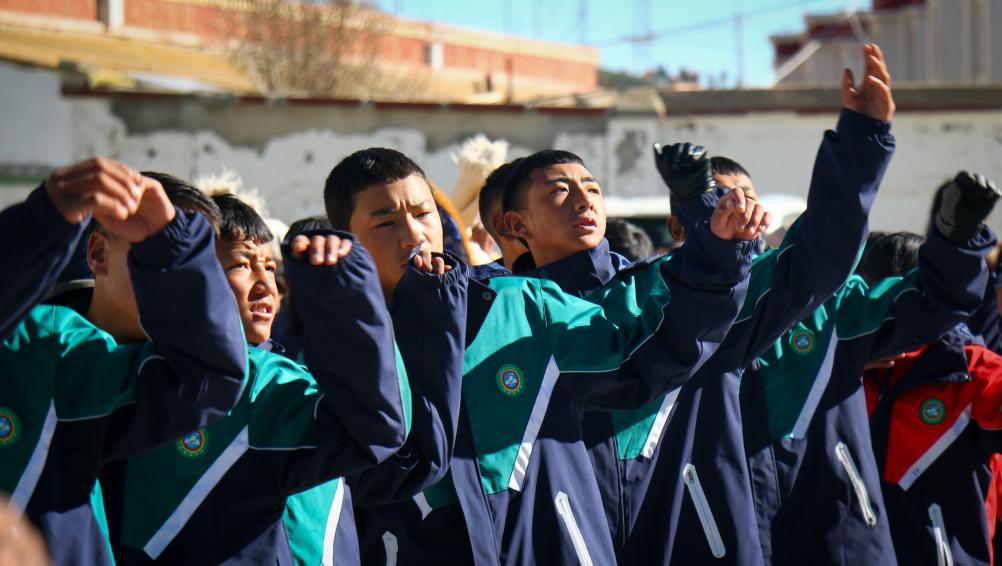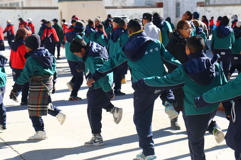 西藏阿里措勤縣中學的學生們涌向操場