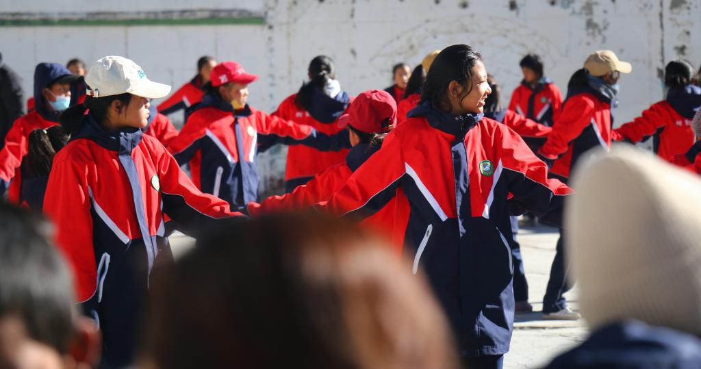 西藏阿里措勤縣中學的學生們正在跳“磁石彈舞”(11月13日攝)新華社記者 陳尚才 攝