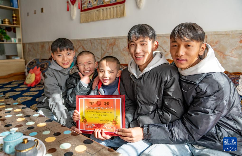 1月8日,“幸福家庭”的孩子們展示獎(jiǎng)狀。新華社發(fā)(丁增尼達(dá)攝)