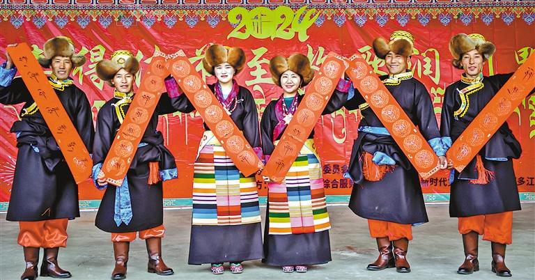 日前,西藏山南市曲松縣邱多江鄉(xiāng)組織300多名干部群眾在瑪如村舉辦了以“喜得佳節(jié)至 牧歌潤川野”為主題的“村晚”文藝匯演活動。當(dāng)?shù)啬撩?、返鄉(xiāng)大學(xué)生用17個精彩的舞蹈、歌曲、朗誦等節(jié)目,謳歌新時代新生活,展現(xiàn)基層群眾積極樂觀、昂揚向上的精神風(fēng)貌。