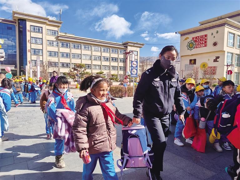 站在學(xué)校門口,等待孩子的家長央金感觸頗深,她告訴記者,每次開學(xué)前、開學(xué)時、開學(xué)后,都能看到民警們忙碌的身影。為學(xué)校家長提供幫助,為學(xué)生消除安全隱患,營造了安全、和諧、文明的校園環(huán)境,十分感謝他們?!敖裉靾蟮嚼?,我們看到警察叔叔和阿姨就覺得很安心、很開心?!睂嶒炐W(xué)3年級10班學(xué)生白瑪娜薩說。