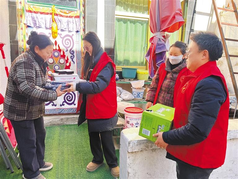 3 月 5 日,在城關(guān)區(qū)納金街道,一群身著鮮艷紅馬甲的志愿者分成3組,迅速投入到各自的志愿服務(wù)環(huán)節(jié)中。志愿者們有的幫助老人打掃家庭衛(wèi)生;有的則與老人聊天,為他們帶去心靈上的慰藉和溫暖的陪伴;還有的向老人發(fā)放慰問(wèn)品及宣傳手冊(cè),為老人們解疑答惑。