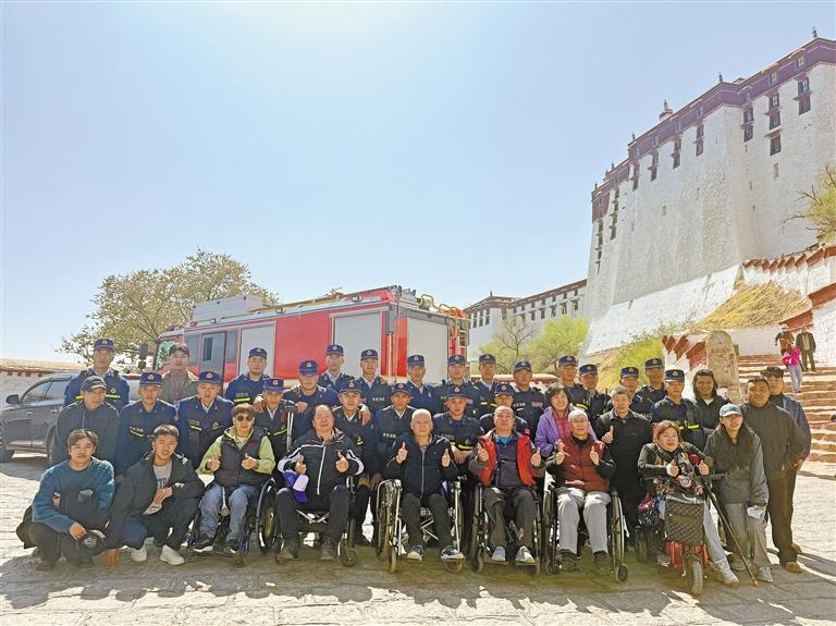 近日,西藏自治區(qū)殘疾人聯(lián)合會(huì)攜手西藏自治區(qū)殘疾人就業(yè)創(chuàng)業(yè)園共同舉辦“有愛無礙·推動(dòng)無障礙”活動(dòng),幫助25位殘障人士“圓夢(mèng)”游覽布達(dá)拉宮。這些殘障人士中,有15位肢體殘疾、4位視力殘疾、6位重度輪椅使用者和2位重度全盲者。拉薩市布達(dá)拉宮消防救援大隊(duì)光榮受命,為本次活動(dòng)保駕護(hù)航。