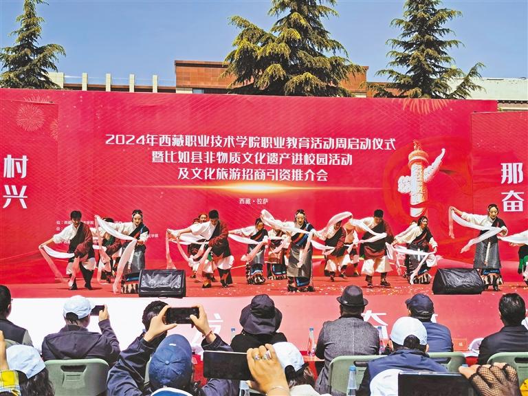 日前,2024年西藏職業(yè)技術學院職業(yè)教育活動周在拉薩啟動。那曲市比如縣非物質文化遺產走進校園,激發(fā)了學生和老師對傳統(tǒng)文化濃厚的興趣。