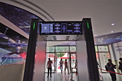 北航實驗學(xué)??键c,升級后的智能安檢門。新京報記者 李木易 攝