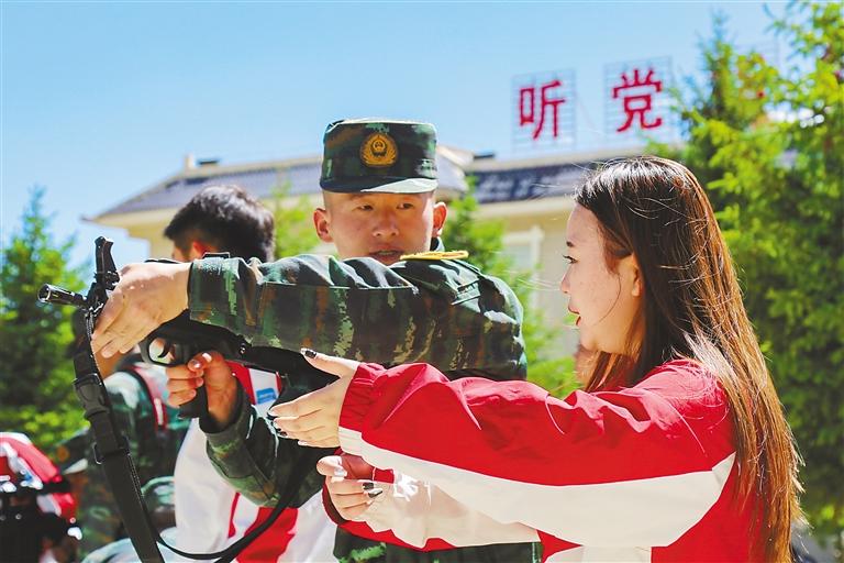 西部計(jì)劃志愿者體驗(yàn)武器裝備。通訊員 劉爽 記者 楊子彥 攝
