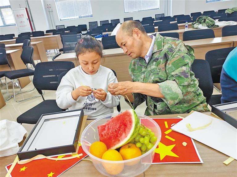 退役軍人和青少年一起參與手工制作環(huán)節(jié)。記者 格桑倫珠 攝