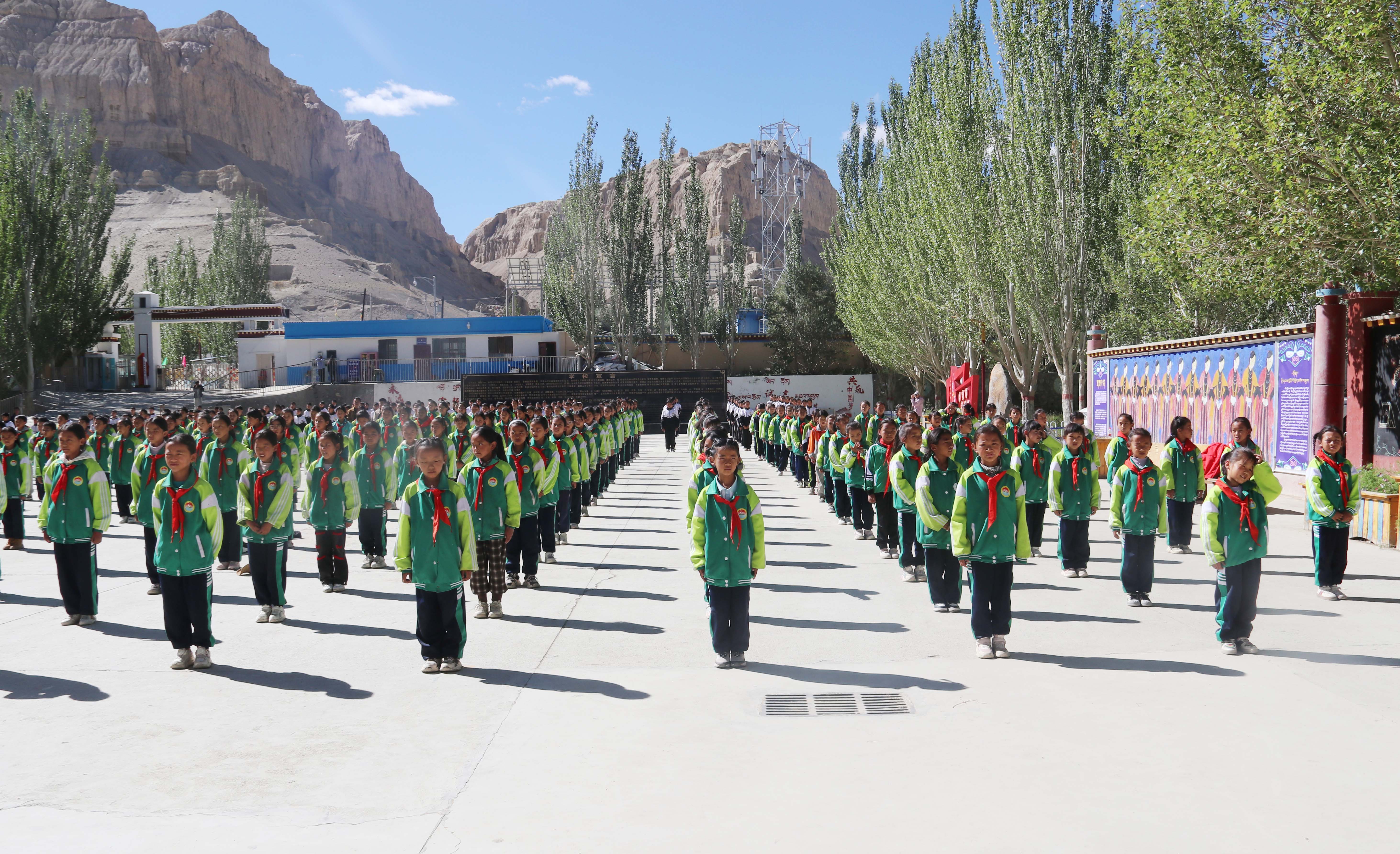 象泉河畔,古格腳下,坐落著札達(dá)縣九年一貫制學(xué)校。這里有漢、藏、回族的教師,有漢、藏、回、撒拉族的學(xué)生,他們?cè)谶@里融洽地生活、學(xué)習(xí),在互幫互助中一起成長(zhǎng)……