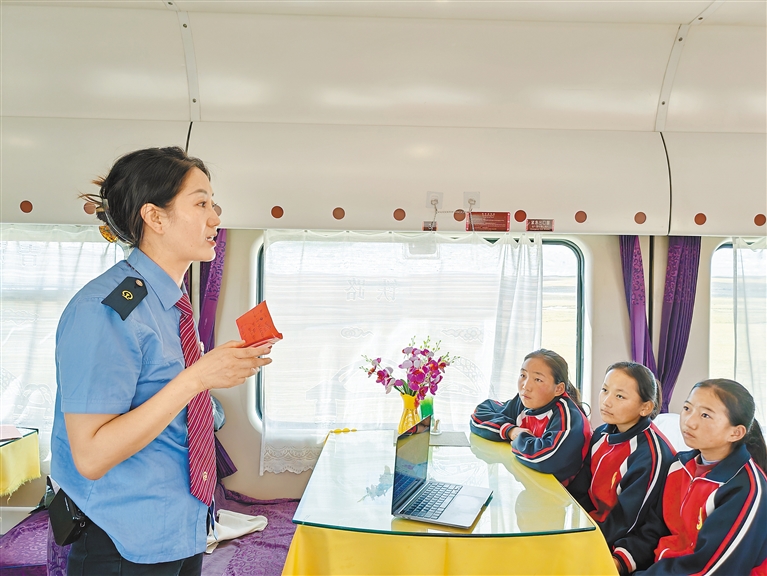 “孩子們,等咱們后面火車開(kāi)到唐古拉、開(kāi)到風(fēng)火山,我會(huì)讓列車員提醒大家,大家看到窗外的風(fēng)景,可不能忘了前輩們的奉獻(xiàn)??!”四朗卓嘎在課上告訴孩子們。