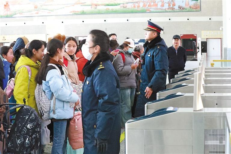 近日,為更好地服務(wù)學(xué)生寒假返鄉(xiāng),山南火車(chē)站積極與當(dāng)?shù)馗鲗W(xué)校聯(lián)系接洽,及時(shí)掌握返鄉(xiāng)學(xué)生的具體人數(shù)及客票、乘車(chē)需求等信息,并增設(shè)了學(xué)生票辦理專(zhuān)窗,安排專(zhuān)人引導(dǎo)。同時(shí),山南火車(chē)站還組織人員在安檢口、檢票口、電扶梯、站臺(tái)等關(guān)鍵區(qū)域加強(qiáng)引導(dǎo)幫扶,特別開(kāi)辟了學(xué)生安檢專(zhuān)用通道,幫助學(xué)生快速驗(yàn)證進(jìn)站,減少等待時(shí)間。