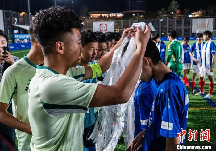18日晚的香港西沙GO PARK球場(chǎng),一場(chǎng)“跨越山?!钡淖闱虮荣愓诖碎g舉行,西藏青少年組成雪域雛鷹隊(duì)與香港東方體育會(huì)足球隊(duì)U16隊(duì)在綠茵場(chǎng)上以球會(huì)友。
