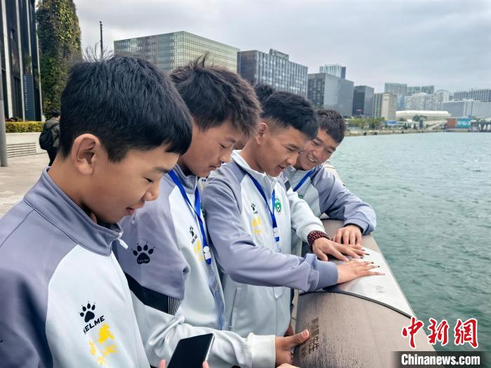 2月19日,參加“跨越山海 以球會(huì)友”藏港青少年足球交流活動(dòng)的西藏自治區(qū)青少年來(lái)到香港星光大道,他們把手掌覆蓋到海邊欄桿的明星手印上,試著比大小?!≈行律缬浾?劉大煒 攝