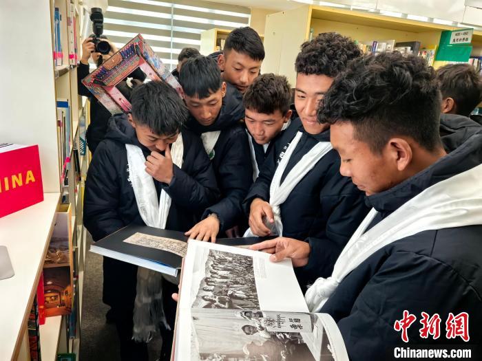 2月20日,參加“跨越山海 以球會(huì)友”藏港青少年足球交流活動(dòng)的西藏自治區(qū)青少年在香港中華基金會(huì)中學(xué)圖書(shū)館翻閱介紹西藏的圖冊(cè)?!≈行律缬浾?劉大煒 攝